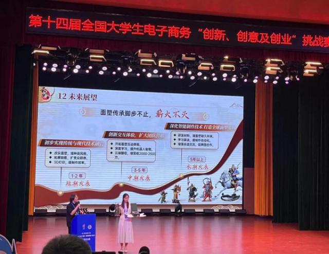 总决赛现场气氛紧张而热烈,各参赛团队通过项目展示和答辩环节,充分展现了他们在电子商务领域的创新思维、独特创意及卓越的创业能力。参赛项目涵盖了三农电商、文旅电商、工业电商、跨境电商等多个领域,不仅体现了大学生对市场趋势的敏锐洞察力,还展示了他们利用新技术、新模式、新服务解决实际问题的出色能力。